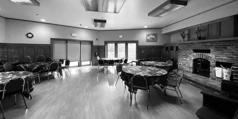 Our Taiga room, located on the first floor, features a charming original fireplace, large windows, and a sun porch that can function as a separate break out area for smaller group sessions or casual conversation. The room can hold up to 45 people.